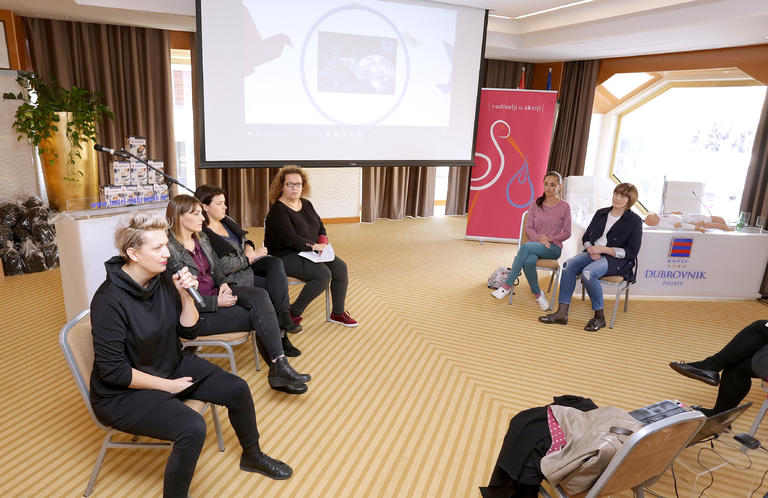 Na kraju konferencijskog dana održane su i dvije radionice o praktičnom nošenju djece – jedna za zdravstvene djelatnike, a jedna za ljude koji žele naučiti više o raznim vrstama nosiljki, koje su vodile Urška Podvršič, dipl. psih., voditeljica Trageschule mreže Savjetnica za nošenje za Sloveniju, Hrvatsku, Srbiju i BiH te Iris Božić, vlasnica stranice www.nosenjebeba.com.