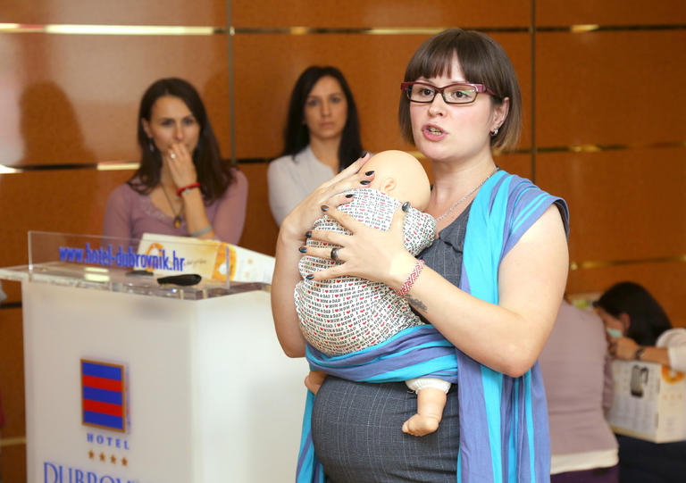 Patronažna sestra Željka Skukan Šoštarić, IBCLC govorila je o praktičnosti nošenja djece u nosiljkama i na koji način nošenje olakšava dojenje, ali i druge obiteljske veze, s naglaskom na tome da žena koja uspije dojenje uskladiti sa svojim načinom života, čemu znatno pripomaže nošenje djeteta u nosiljci, duže i uspješnije doji.