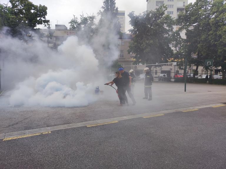 Uz teorijska znanja, sudionice i sudionici imali su prilike za praktičan rad i vježbe, poput korištenja vatrogasnog aparata, ponašanja tijekom evakuacije u slučaju požara, vježbali su snalaženje u okolnostima dima u vježbalištu za vatrogasce, a zaposlenici JVP organizirali su i pokaznu vježbu gašenja požara na tornju u Savskoj 1.