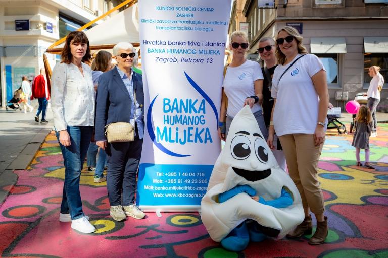 “Kapljica”, maskota Banke humanoga mlijeka, okupirala je pažnju male dece, a njihove mame imale su priliku od zaposlenica Banke humanog mlijeka pri KBC Zagreb saznati sve o uključivanju u proces darivanja mlijeka.