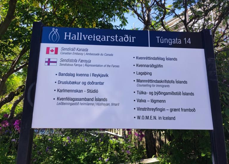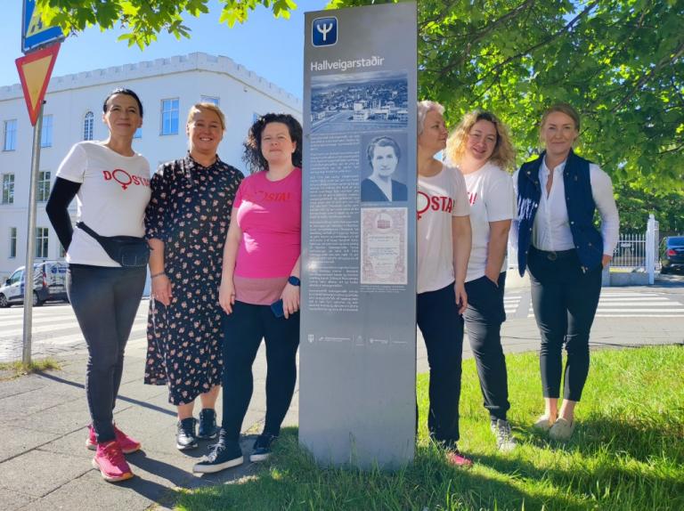 Naša partnerica i organizatorica radionica i predavanja u Reykjaviku, Thornbjorg Inga Jonsdottir iz organizacije Women's Counselling, zadnji dan je za nas priredila obilazak zgrade Hallveigarstaðir koja je dobila ime po prvoj ženi koja je u 9. stoljeću doselila na Island, Hallveig Fróðadóttir. U toj zgradi smještene su važne islandske ženske organizacije. Tijekom obilaska zgrade slušale smo povijesni pregled ženskog pokreta na Islandu s posebnim naglaskom na organizaciji prosvjeda Women's Day Off 2000. godine čiju organizaciju je inicirala naša partnerica Thornbjorg Inga Jonsdottir.
