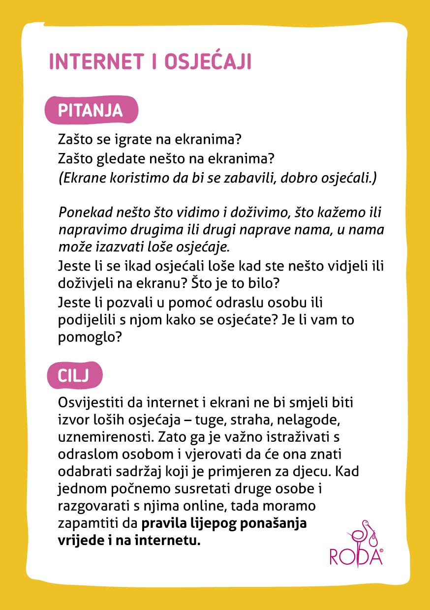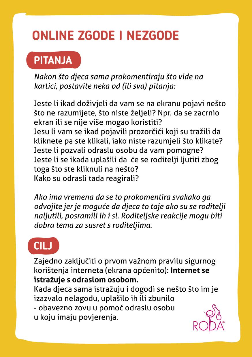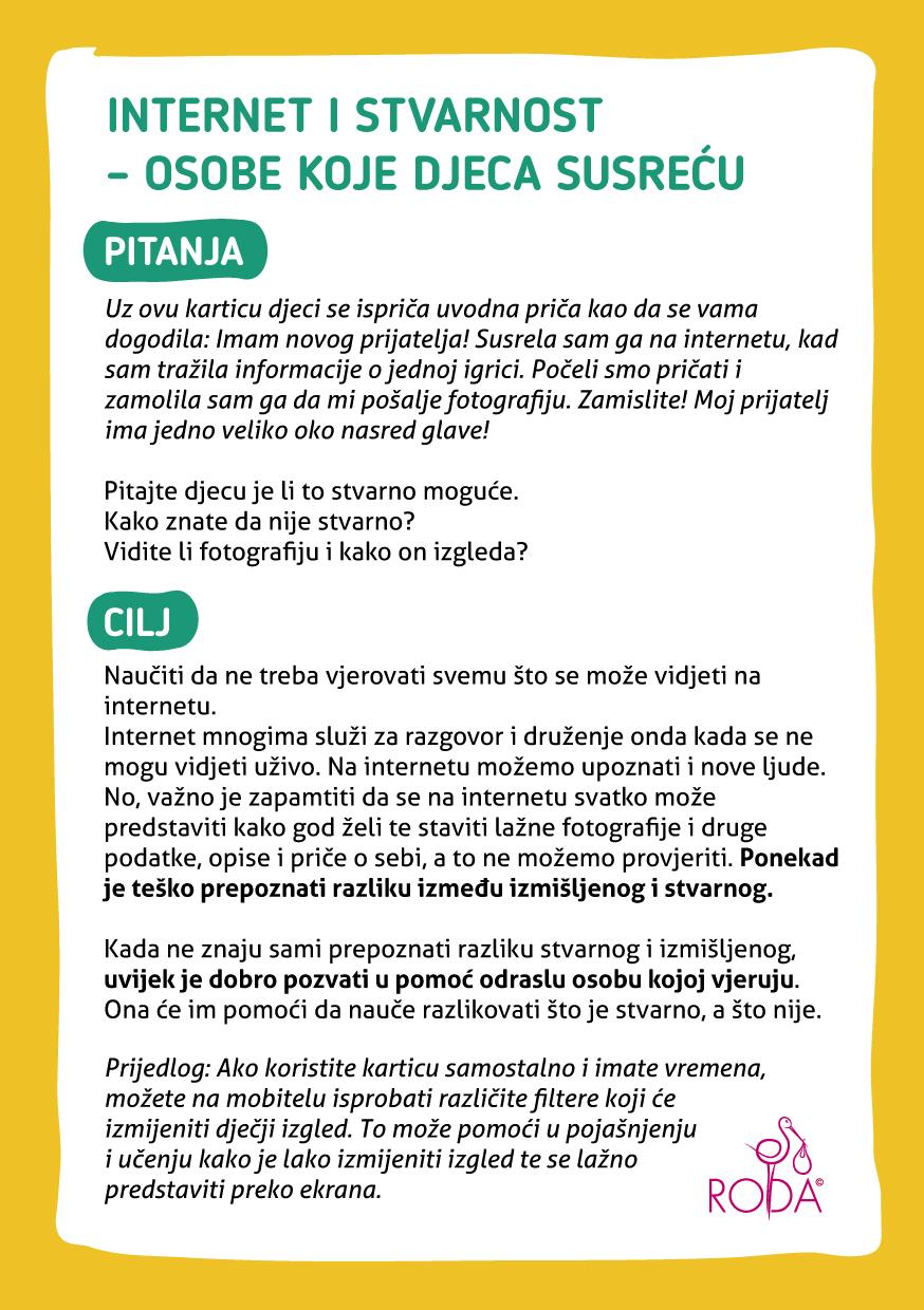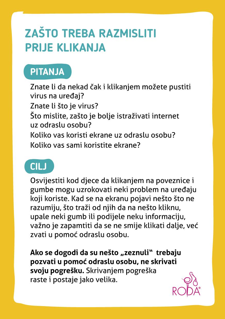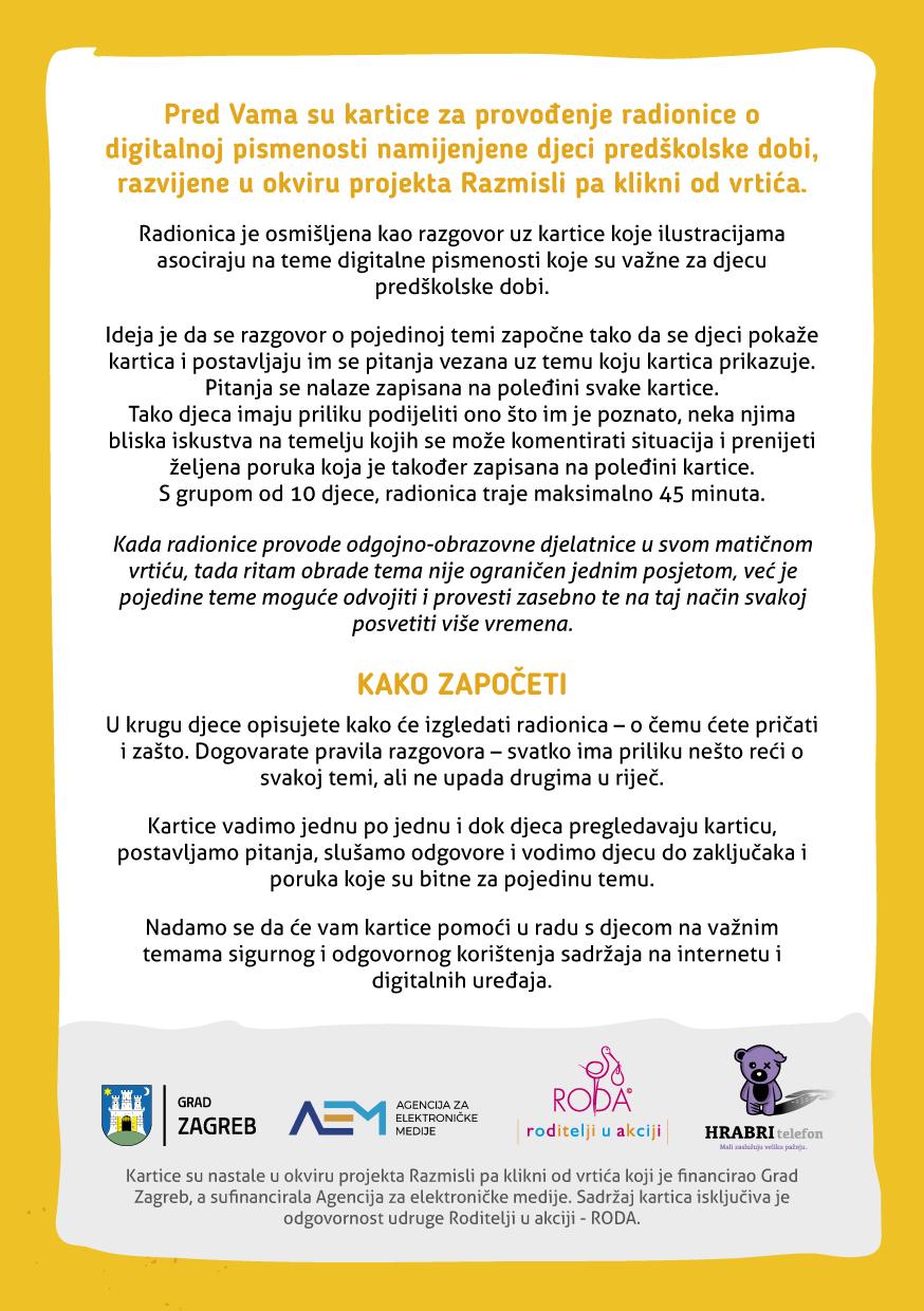 Edukativne kartice nastale su u okviru projekta Razmisli pa klikni od vrtića koji je Roda provodila uz financijsku podršku Grada Zagreba i sufinanciranje Agencije za elektroničke medije. Sadržaj kartica isključiva je odgovornost udruge Roda i ni pod kojim uvjetima ne može se smatrati kao odraz stajališta Grada Zagreba ili Agencije za elektroničke medije.
