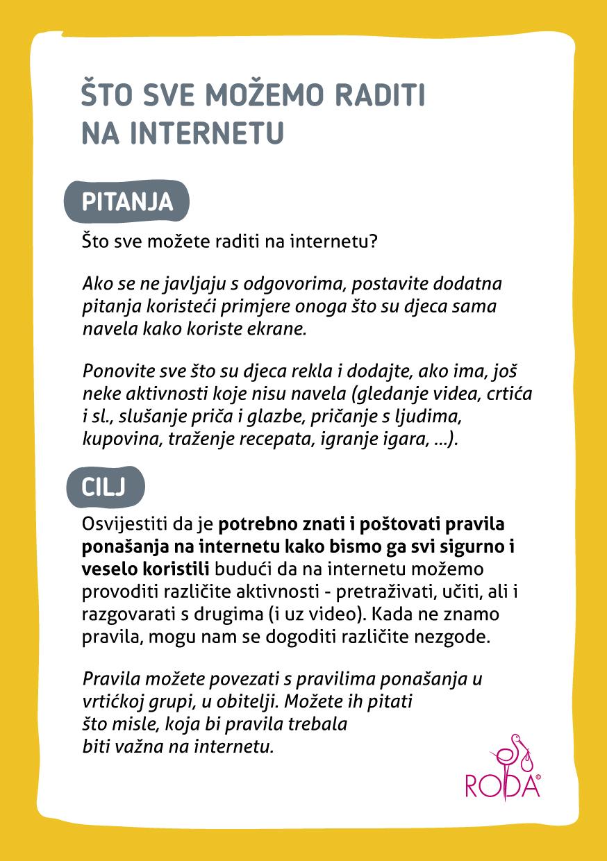Kartice ilustracijama asociraju na teme digitalne pismenosti, važne za djecu predškolske dobi, a to su: