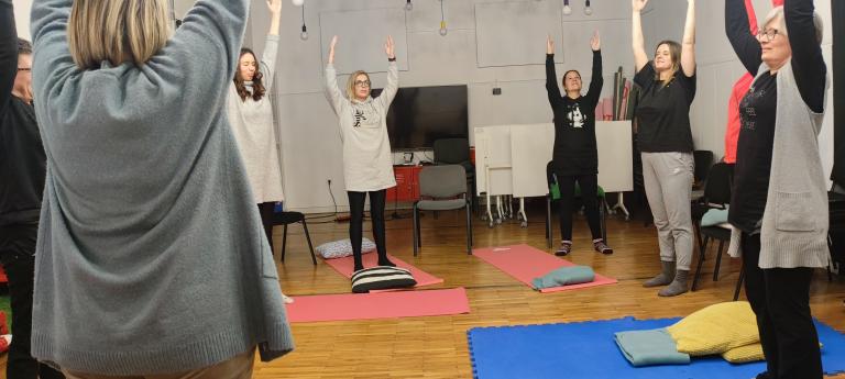 U svrhu smanjenja stresa i sagorijevanja tijekom rada i volontiranja od siječnja do travnja 2023. godine, za zaposlenice i članice Udruge za kreativni socijalni rad i udruge Roditelji u akciji organiziran je tečaj pune kognitivne svjesnosti koji su provele licencirane MBCT trenerice Bernardica Franjić Nađ i Đulijana Badurina-Sertić.