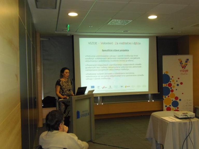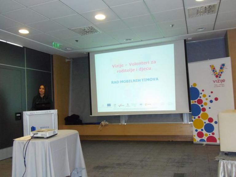 U Osijeku je 1. ožujka 2016. održana završna konferencija projekta Vizije – Volonteri za roditelje i djecu. Pozivu se odazvalo gotovo 80 sudionika i sudionica iz 15 različitih gradova Hrvatske među koji su bili predstavnici institucija, udruga, jedinica lokalne samouprave, volonterke, mediji, akademska zajednica. Predviđeno vrijeme bilo je prekratko za sva ona pitanja koja smo otvorili govoreći o podršci ranjivim skupinama roditelja.